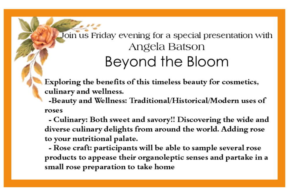 Wonderful and educational speakers (see listed in most recent Newsletter), a very interesting and fun Friday night presentation complete with potpourri making and herbal taste testing with Envi Botanical!
