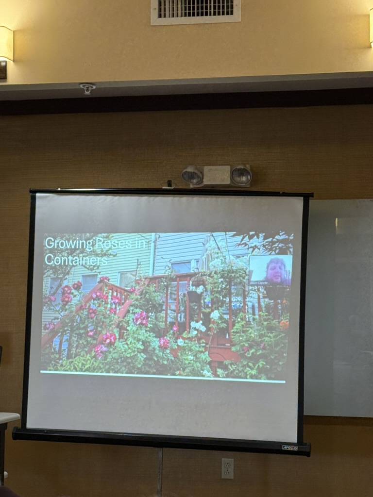 Jason Capote, ARS Consulting Rosarian and Horticulture Judge, shared his hands-on experience of growing roses in containers. Jason grows 170 roses in his New York City Garden and many of those he grows in containers. We learned how to pair the size of the rose and container, just what the lines on the containers actually mean, the best soil, products to use, and how to winter protect! Many of us had no idea full-size roses could flourish in containers. But now we’ve seen the pictures to prove it!